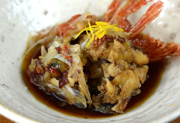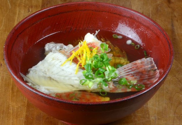 カボチャフサカサゴのしょうゆ汁 あら、胃袋、肝を集めて置く。湯通しして冷水に落として残った鱗やぬめりを流す。水分をよくきり、昆布だしに冷たい内にいれて煮出す。非常に上品でいながらうま味豊かな汁になる。付着している皮や身もとても味がいい。クリックで閉じます![]()
