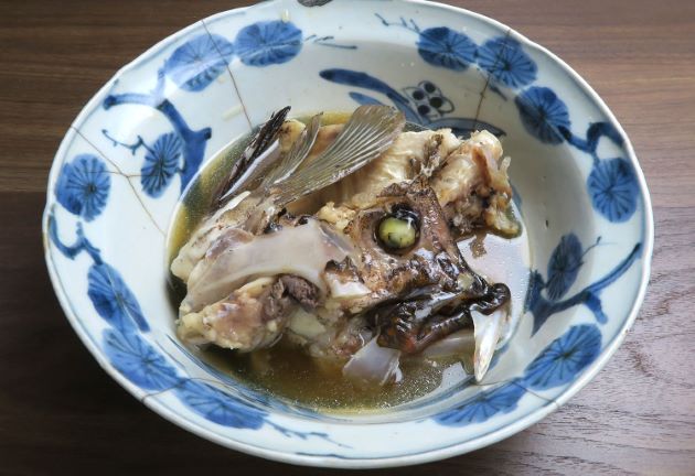 キテンハタの兜煮 兜を比較的あっさりした味つけで煮てみた。兜は梨子割りにして湯通しして冷水に落として残った鱗とぬめりを流す。水分をよくきり、酒・薄口しょうゆ・塩・水で煮る。酒・醤油・砂糖・水でこってり煮てもうまいし、みりんを使ってもいい。クリックで閉じます![]()