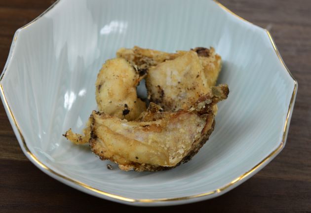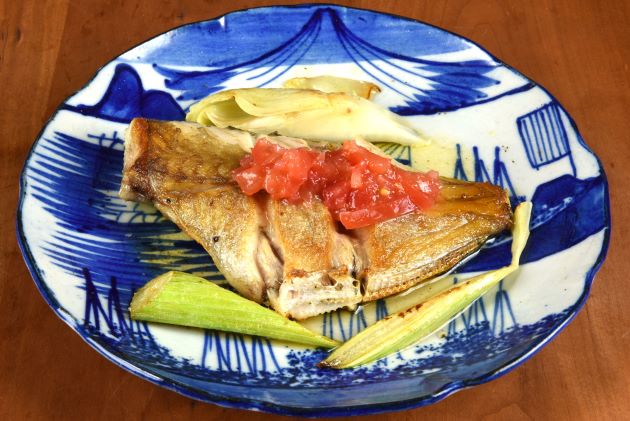 キビレカワハギの酒塩焼き 切り身にして強めの振り塩をする。1時間以上寝かせて、酒にくぐらせて焼く。じっくり焦げないように焼き、酒を塗りながら焼き上げる。身は思ったほど締まらず、やや淡泊な味わいに酒の風味がいい。クリックで閉じます![]()