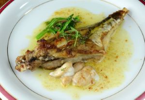 ギマのムニエル 身にあまり味がなく、単調な味であるところを油とバターで補っているといった感じだ。ソテーすると香ばしく、適度に水分がでて身離れがよくなる。一緒にソテーした白子が絶品である。クリックで閉じます![]()