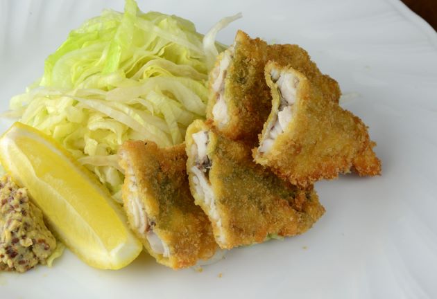 棘状の鰭を切り取り、厚い皮を剥く。三枚に下ろして腹骨・血合い骨を取る。塩コショウし、小麦粉をまぶし、溶き卵にくぐらせ、パン粉をつけて揚げる。