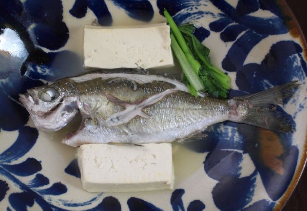 クロサギのまーす煮 水洗いして、水分をよくきる。これを強めの塩水で煮上げる。豆腐と一緒に煮るとご馳走になる。本種本来の皮目や身のうまさ、まただしのうまさが楽しめる。沖縄では本体よりも豆腐の方が主役という人もいる。それほど魚のうま味を吸収した豆腐はうまい。クリックで閉じます![]()