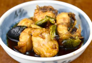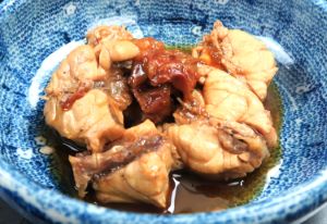 クロサバフグの炒り煮 毒を除去。ペーパータオルなどにくるんで一日寝かせる。皮は棘のある部分は使えないので切って捨て、適当に切る。鍋にしょうが、醤油・みりん・酒・砂糖・少量の水を煮立て、少し煮詰まった中に入れて炒り煮にしていく。濃度の濃い煮汁なので身が適度にしまり、甘辛い味わいでご飯がすすむ。クリックで閉じます![]()