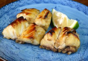 クロサバフグの梅干し煮 水洗いして皮を剥き(棘のない部分の皮は使ってもうまい)、目なども取る。適宜に切り、湯通ししてぬめりなどを取る。水分をよく切っておく。鍋に酒、少量の砂糖、梅干し、少量のしょうゆを合わせた地で煮上げる。梅干しの酸味が爽やかでとても食べやすい。クリックで閉じます![]()