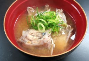 クロサバフグのみそ汁 水洗いして皮を剥き、目なども抜き取って適宜に切る。湯通しして、冷水に落とし滑りや汚れを取る。よく水気を拭き取る。これを水から煮出して、少量の酒(必須ではない)を加え、みそを溶く。実にうま味豊かな汁になる。クリックで閉じます![]()