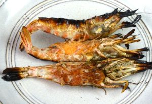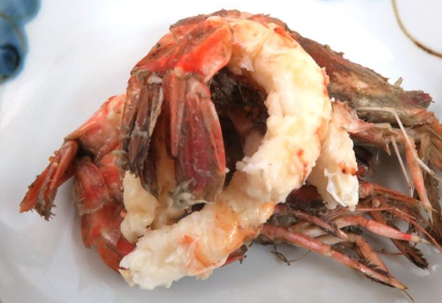 クロザコエビの焼きもの 流水でていねいに洗う。水分をよくきり、強火で短時間焼き上げる。時間をかけて焼くと身が極端に縮んでしまう。身の甘味もエビらしい風味も生の状態に倍する味になる。非常にうまい。焼けた外子がうまいのにも驚き。クリックで閉じます![]()