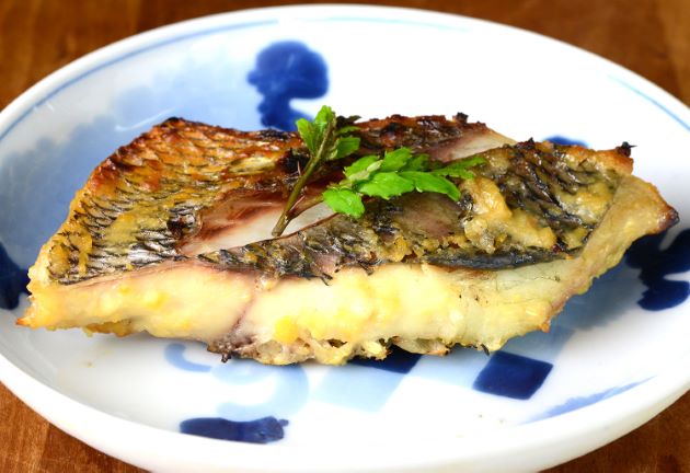 クロダイの白みそ漬け(西京漬け) 淡泊な味わいだが、これを白みその甘味とうま味が補ったといったものである。焼いても硬く締まらず、非常においしい。クリックで閉じます![]()