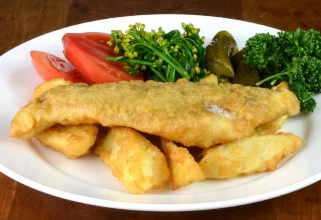 クロダイのフィッシュ&ティップス 非常に緻密で豊潤な白身なので、揚げると表面のぱりっとした食感との対比が面白い。ジャガイモと一緒に揚げたものがフィッシュ&ティップスである。ご飯にもなる。クリックで閉じます![]()