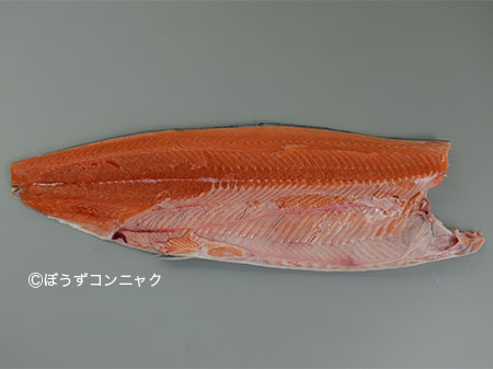 サケ特有の身色で特有の臭みはほとんど感じられない。