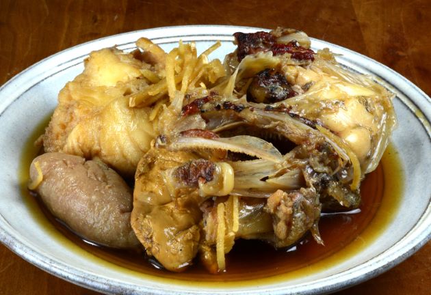 ケムシカジカの煮つけ 皮を剥き水洗いして適当に切る。肝・胃袋などは分けておく。湯通しして冷水に落とし残った皮やぬめりを流す。鍋に醤油・酒・砂糖・水を煮立てて煮上げていく。仕上げに味見してもの足りなかったら化学調味料を加える。身は煮ても硬くならず、やや淡泊な味わいながら捨てがたい味である。肝、胃袋などもおいしい。