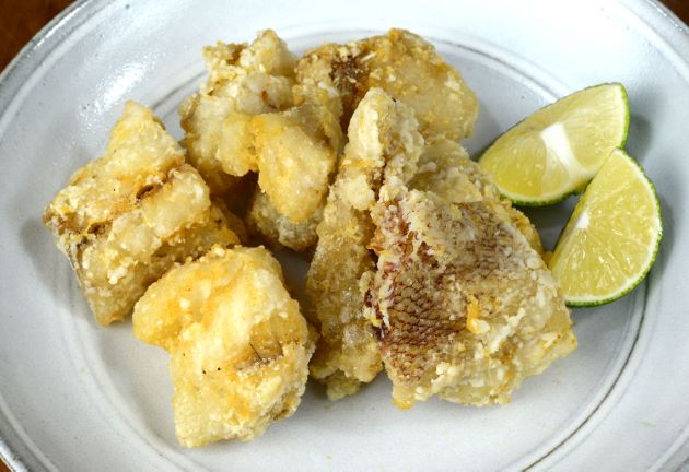 水洗いして刺身などにしたときの端の部分や鰭際などを食べやすい大きさにする。片栗粉をまぶして二度揚げ。揚げ上がりに振り塩をする。
