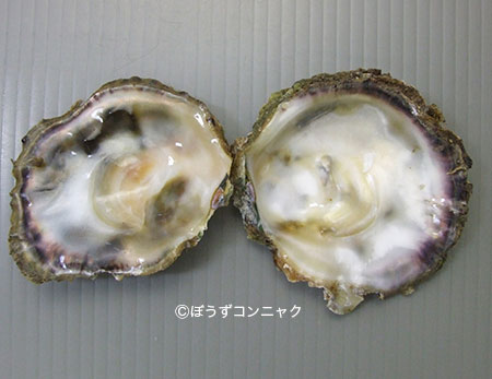 殻幅7センチ前後になる。円形に近く、表面は青みがかり、内側は黄色く汚れたように見える。