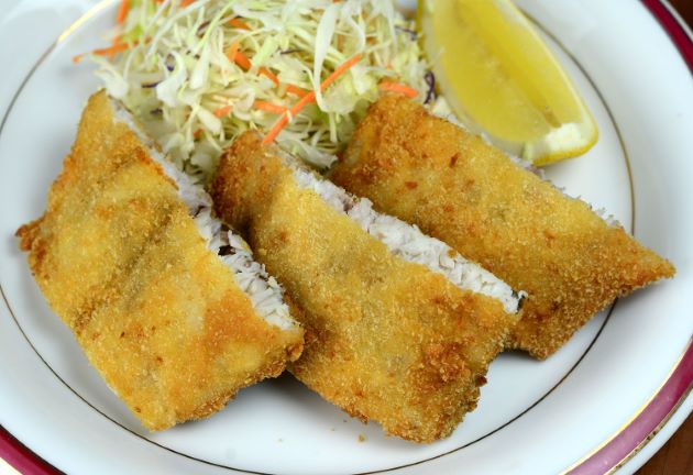 コバンアジのフライ アジ科の中では鱗が硬いのが難点。場合によっては皮を引いてもいい。水洗いして三枚に下ろし、切り身にして塩コショウする。小麦粉をまぶして衣(卵・小麦粉・水。少ないときは溶き卵)をからめてパン粉をつけて揚げる。身にうま味があり、アジフライのような独特の風味がある。非常に美味。クリックで閉じます![]()