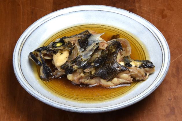 ゴマソイの煮つけ かぶとを使ったので兜煮かも。頭部を梨子割りにして湯通しする。冷水に落として残った鱗やぬめりを流す。水分をよくきり、酒・しょうゆ・水で煮る。砂糖・みりんで甘味をつけてもいい。煮ても硬く締まらず、皮と皮下のゼラチン質がおいしい。身にも甘みがある。クリックで閉じます![]()