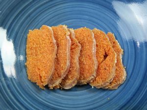 フグの子のぬか漬け 石川県の白山市美川町、金沢市、能登半島輪島などで作られているもの。猛毒の卵巣を35〜40%の食塩で2〜3ヶ月漬け込む。次に塩をかえて2年以上漬け込む。水洗いして糠に1〜2年漬け込む。糠を取り、スライスして生のまま食べる。軽く炙ってもうまい。[荒忠商店 石川県白山市美川]クリックで閉じます![]()