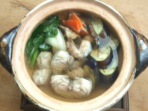 ゴマフグのちげ 毒を除去したゴマフグの身を適宜に切る。一度湯通しして冷水に取り、水分をよく切っておく。鍋にカツオ節出し(鶏ガラでもいい)、酒、少量の魚醬、粉唐辛子を加えて、白菜キムチ、豆腐、青菜などと一緒に煮ながら食べる。クリックで閉じますゴマフグのちげ
