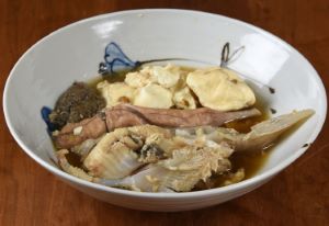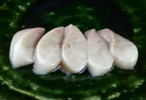 サガミザメの肝刺身 ツノザメ類の肝は味がいい。本種も予想に違わず、いい味である。室温で溶けていくのはスクワランがあるせいかも。口の中に入れるととろけて、すーっとなくなる感じ。そこにうま味成分からくる甘味とうま味がある。クリックで閉じます![]()