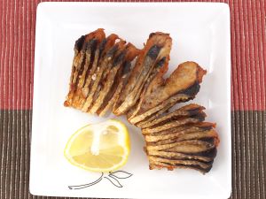 サバヒーのごま油焼き 水洗いして三枚に下ろし、やや薄めに切り、小麦粉をまぶしてごま油で香ばしく焼き上げたもの。淡泊な身質で味わいは無個性ながらイヤミのない味。コチュジャンなどが合う。クリックで閉じます![]()