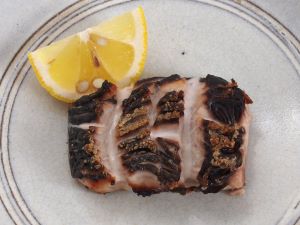 サバヒーの塩焼き 大振りのものを水洗い、三枚に下ろして適当に切る。振り塩をして30分以上ねかせてじっくりと焼き上げたもの。皮目にスズキのような独特の香りがないのが残念ではあるが捨てがたい味。クリックで閉じます![]()