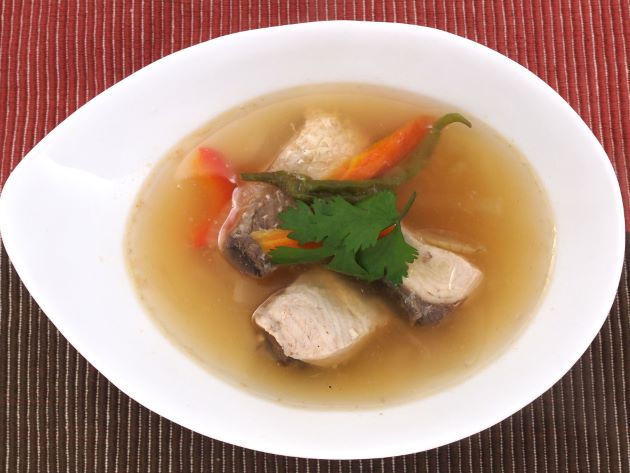 Republika ng Pilipinas(フィリピン)Sinigáng na Isdâ(シニガン) フィリピンのMilkfishを使った代表的な料理。タマリンドをベースにしたスープで、ここではインスタントを使った。酸っぱくて辛みのある独特の風味のスープで意外にも上品で食べやすい。夏に食べると非常に癒やされる気がする。