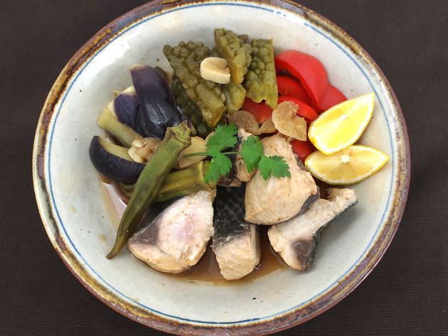 Republika ng Pilipinas(フィリピン)PAKSIW NA ISDA(パクシウ ナ イスダ) サバヒーの切身と野菜を酢(ビネガー)、水、塩、魚醬などの味付けで煮たもの。酸味のせいであっさりした塩味。パンよりもご飯に会う。朝食で食べてもいい。関連コラム(郷土料理)