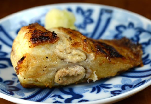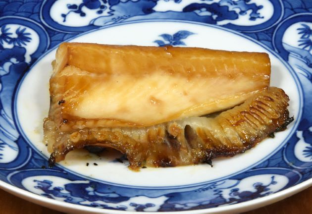 サメガレイの幽庵焼き 水洗いして五枚に下ろす。切り身にして、切り身を酒・みりん・しょうゆ同量を合わせた地に、数時間から1日、つけ込んで焼き上げたもの。焼き上げると醤油の香りが立ち、柔らかく非常にうま味が豊かである。クリックで閉じます![]()