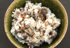 赤貝ごはん(赤貝めし) 宍道湖、中海周辺で大量に水揚げされていたのがサルボウ。これを「殻むし」に、炊き込みご飯に、おこわなどにしていた。なかでも「赤貝めし」はよく作られ、米子駅のそば店などでも食べることができる。うるち米だけではなくもち米を使うこともある。[島根県出雲地方・鳥取県西部]クリックで閉じます![]()