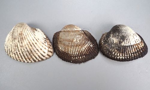貝殻は硬く厚みがある。泥をかんでいることが多い。