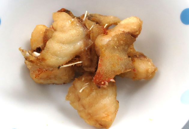 鱗は細かく皮膚に少し埋もれていて取りにくい。すき引きするべきかも。皮は厚くて硬く、熱を通すとゼラチン質になる。骨はやや硬め。