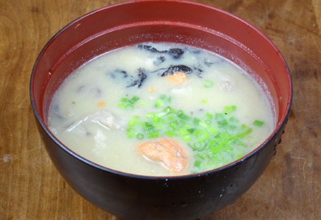 シモフリハナアンコウのみそ汁 白みそで煮ると皮も身も内臓も半分溶けてポタージュみたいになる。とろとろとして甘みがあって滋味豊かである。ご飯にもとても合う。皮や身、内臓などを適当に切る。湯引きして氷水に落として表面のぬめりを流す。これを水から煮て白みそを溶く。少し煮込む。クリックで閉じます![]()