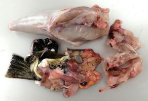 鱗と皮は一枚の布状で力は要するがはぎ取れる。骨はあまり硬くない。