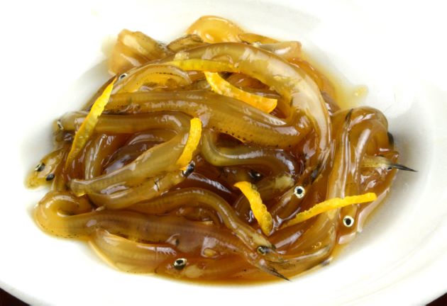 シラウオの漬け 大小にかかわらず作ることができる。シラウオは塩水などでさっと洗う。これを地(酒・みりん・醤油を一煮立ちさせたもの。アルコールがだめなら酒とみりんは煮きって使えばいい)。1時間以上漬け込んだら出来上がり。このまま食べられるが柚子などの香りをつけるといい酒の肴になる。ご飯に乗せてもおいしい。クリックで閉じます![]()