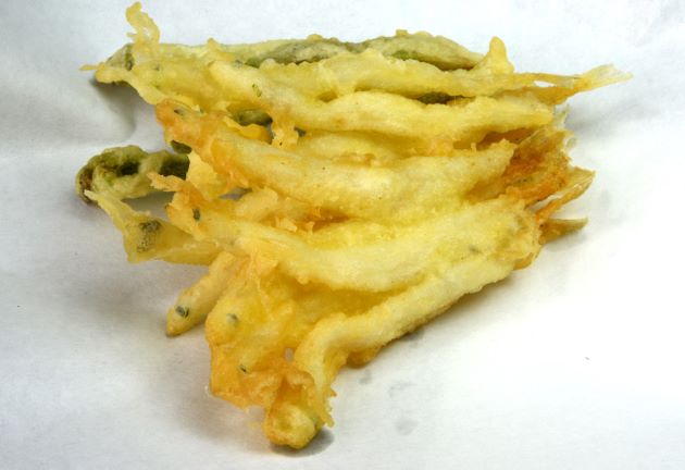 シラウオの天ぷら 東京ではすしダネとしても重要だが、春の天ぷらダネとしてもっと遙かに重要である。4、5尾の尾の部分をつまんで揚げるのが基本である。