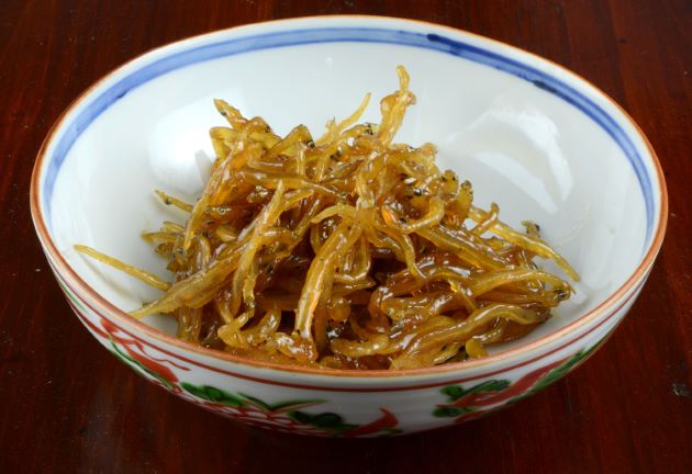 シラウオの佃煮 塩水でさっと洗い、水分をよくきる。酒・しょうゆを煮立たせたなかで短時間で火を通す。しょうゆは少なめにした方がシラウオ本来の味が生きる。砂糖などで甘味をつけるとご飯に合う。山椒、しょうがなど好みのもので風味をつける。クリックで閉じます![]()