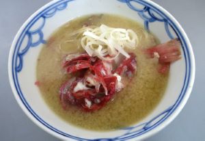 シロカサゴのみそ汁 棘が強く、身に水分が多い。これが本種の安い理由だ。刺身などにすると味がない。静岡県沼津市戸田の漁師さんなどは、船で食べる昼ご飯などに本種をみそ汁にする。意外にも適度に身が締まり、うまいだしが出る。クリックで閉じます![]()