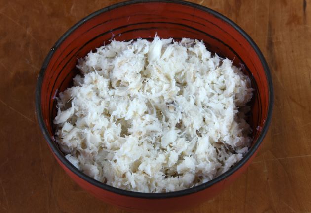 つまみたら 「すき身すけとうだら」をほぐしたものが最初かも。現在は塩分濃度を下げ、甘味を添加している。会津地方の「塩たらの山菜漬け」はこれで作る。