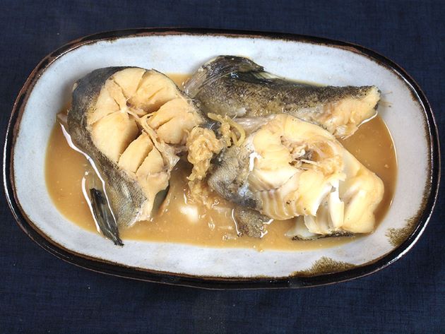スケトウダラ本体スケトウダラのみそ煮 輪切りにしたスケトウダラをみそ煮にしたもの。水洗いして水分をよく切っておく。ぬめりがあるので湯通ししたいが、身が脆いのでそのまま煮る。みそ・酒・みりん・甘いのが好きなら砂糖・水を煮立たせたなかに入れて煮上げる。上品な白身でとても柔らかい。