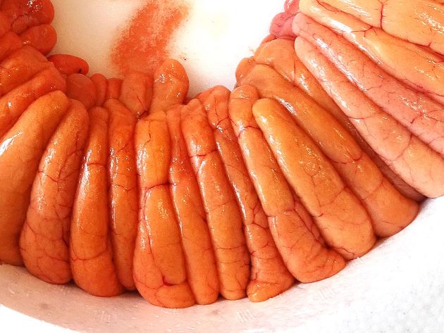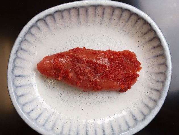 卵巣辛子明太子 これは塩漬けしたスケトウダラの卵巣を唐辛子のきいた調味液につけ込んだもの。戦後福岡市博多の「ふくや」が広めたとされる。この辛子明太子は1970年代後半にはまだまだ九州周辺(福岡市)での特産品的なものだった。これが全国的になってきたのは1980年代になってからだと記憶する。ただし戦前の東京にも助子に唐辛子をまぶしたものは朝鮮半島から入荷していた。