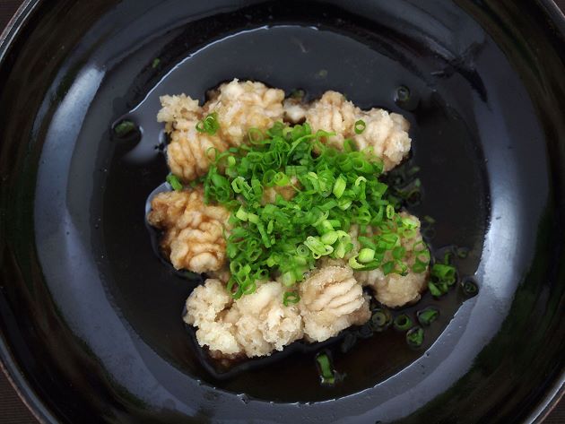 白子スケトウダラ白子の揚げ出し 白子は塩水などでさっと洗い、よく水分を切っておく。これに小麦粉をまぶし、衣をつけて強火で揚げ、皿などに盛り、カツオ節だしのあんをかけたもの。これは万人向きの料理だ。