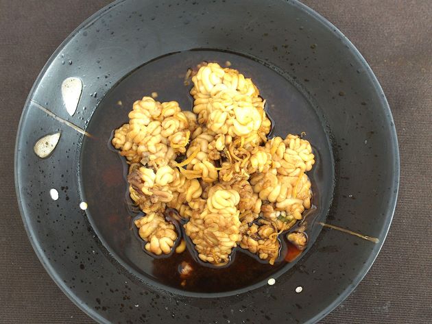 白子白子ポン酢 マダラの白子よりも遙かに安い割りには、味的にはそれほど大きな差はないと思う。生で食べるわけにはいかないが、塩ゆでして、氷水に落として粗熱をとり、水分をよくきる。後はポン酢をかければ「白子ポン酢」となる。スケソの白子は庶民の味方だ。