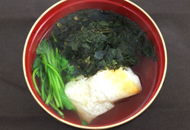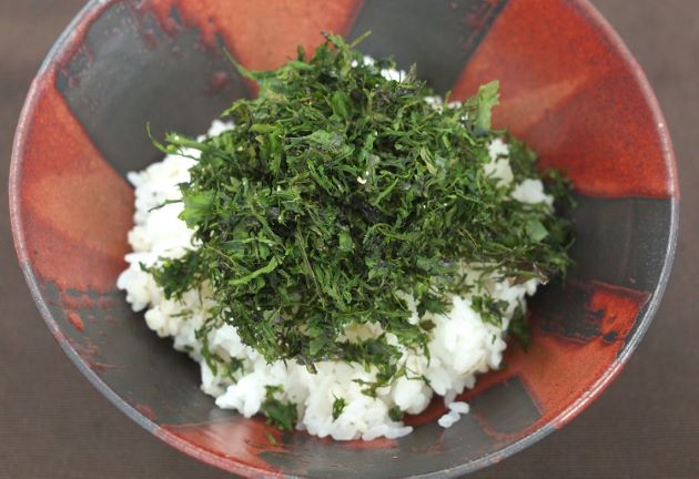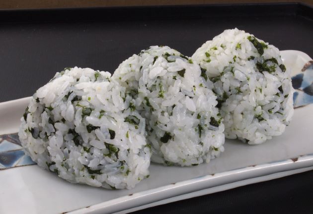 かしかめのりのばくだん(セイヨウハバノリのおむすび) 島根県ではあぶった「かしかめ」で大きなお握りを包む。これを「ばくだん」というが、温かいご飯と接触したハバノリの香りの高さは官能的ですらある。クリックで閉じます![]()