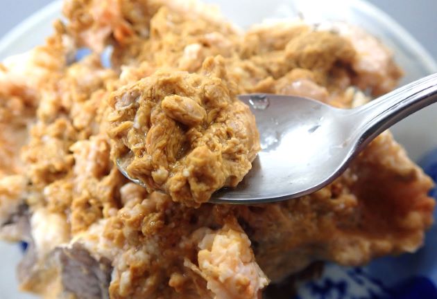 中心部分にウニに近いものがあり、生では苦みが微かにあり、少しだけウニに近い風味があった。