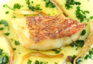 センネンダイのムニエル 水洗いして三枚に下ろし、適当に切って塩コショウする。小麦粉をまぶしてじっくり時間をかけて皮の方をソテーする。皮が香ばしく上がったら身をソテーする。切り身を取りだして柑橘類とバターでデグラッセする。バターやオイルに負けない身のうまさ、皮の香ばしさが堪能出来る。クリックで閉じます![]()