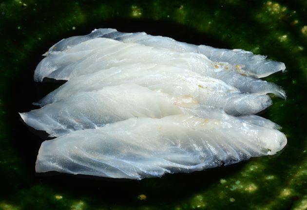 透明感のある白身。熱を通しても硬くならない。骨などからいいだしが出る。