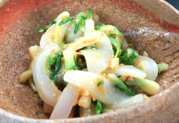 ソデイカのぬた(アカイカのぬた) ブロックを適当に切って生のままゆでたアサツキと酢みそ(みそ・酢・砂糖・硬さ調整に昆布だし)と和えてぬたにしてみた。軽く湯引きしてもいい。ヤリイカなどと比べるとひと味足りないのを酢みそが補う。クリックで閉じます![]()