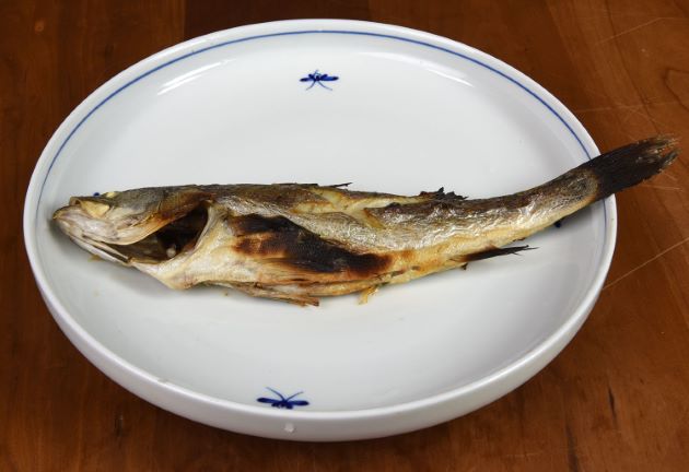タイリクスズキの韓国風焼き(농어구이) ソウル、仁川では魚を焼くのではなく、ソテーしたものが多いようだ。切り身に塩コショウして小麦粉をまぶしてごま油でじっくりソテーする。表面はさくっとして身自体は柔らかく、国内にいるスズキと同じ味がする。とてもおいしいが、スズキとの違いはわかりにくい。