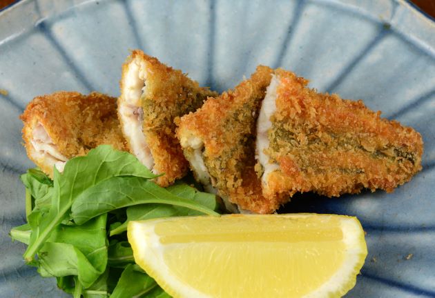水洗いしてていねいに水分を拭き取る。片栗粉をまぶしてじっくりと二度揚げする。水分が多いのでじっくり揚げるとさくさくと余すところなく食べられる。皮に独特の風味があり、捨てがたい味わい。醤油を垂らすとご飯にも合う。