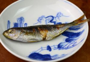 小タカベの塩焼き/小型 小さくてもほどほどに脂があって、しかも濃厚なうま味を持っているのがタカベの特徴である。内臓のきれいな魚で、小型なのでそのまま流水などで洗い、振り塩をする。少し寝かせて焼き上げる。体長11cmしかないにも関わらず大いにウマシ、だ。クリックで閉じます![]()
