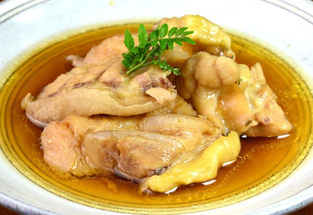 ダウリアチョウザメの煮つけ ブロックで来たので腹部の膜のある部分を煮つけてみた。適当に切り、湯通しして冷水に落として粗熱をとる。水分をよくきり、酒・砂糖・醤油・水を沸騰させた中で煮る。腹腔膜はゼラチン質になり身は非常に柔らかく煮える。身自体に味があり、非常にうまい。クリックで閉じます![]()