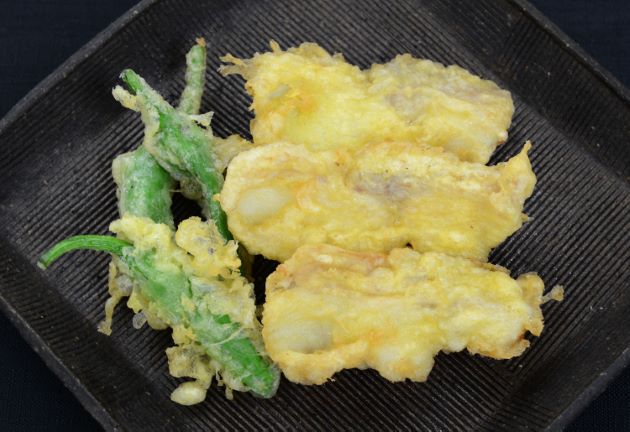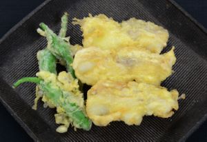 チャネルキャットフィッシュの天ぷら(アメリカナマズの天ぷら) 上品で嫌みのない味わい。天ぷらにするとこの上品さがあだとはなるが、おいしいことは間違いない。三枚に下ろして腹骨を取り、皮を引き適当にきり、弱い振り塩をして少し置く。水分をていねいに取り、天ぷらにする。クリックで閉じます![]()